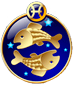 две плывущие в разные стороны Рыбы, раковина, волна.
